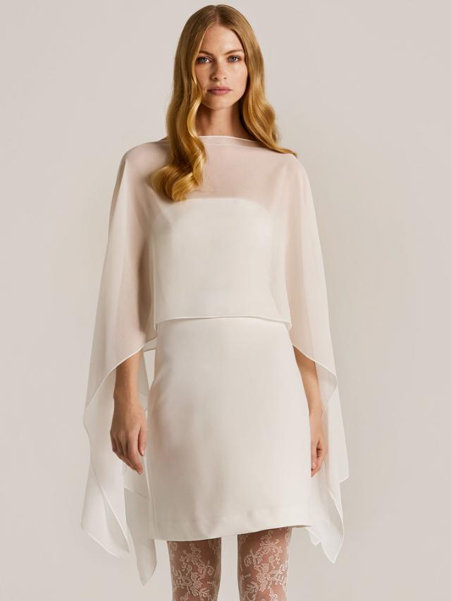 „Ich habe mich völlig in die leichte Organza-Brocade mit ihren zarten Blumen verliebt. Besonders fasziniert hat mich, wie sie schwebend über die darunterliegenden Lagen aus Tüll und Satin zum Leben erwacht und dabei einen Ausdruck purer Romantik und Anmut entfaltet.“