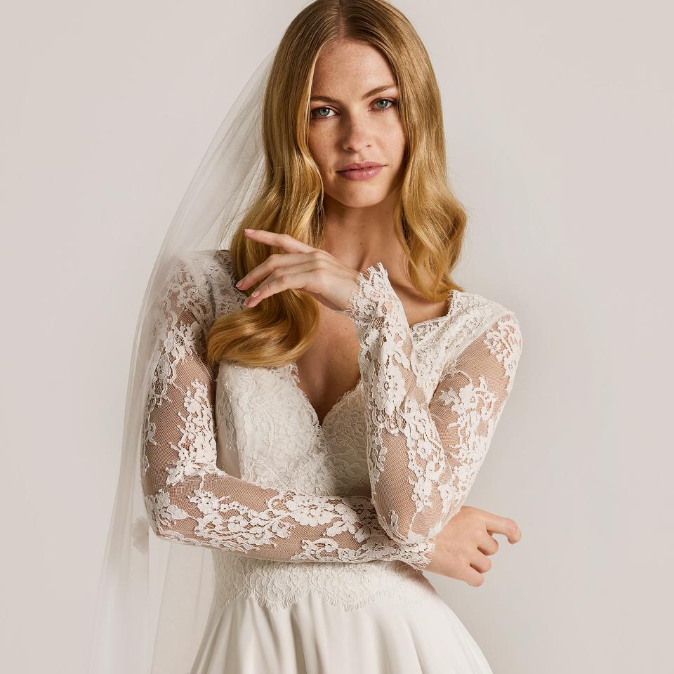 Ärmel gehören zu den prägendsten Elementen der modernen Brautmode. Lange, schmale Spitzenärmel wirken elegant und strecken die Silhouette, während sanft gepuffte oder skulptural geformte Ärmel Dramatik und verspielte Leichtigkeit verleihen. Transparente Ärmel sorgen für luftige Leichtigkeit und bieten dennoch dezente Bedeckung.