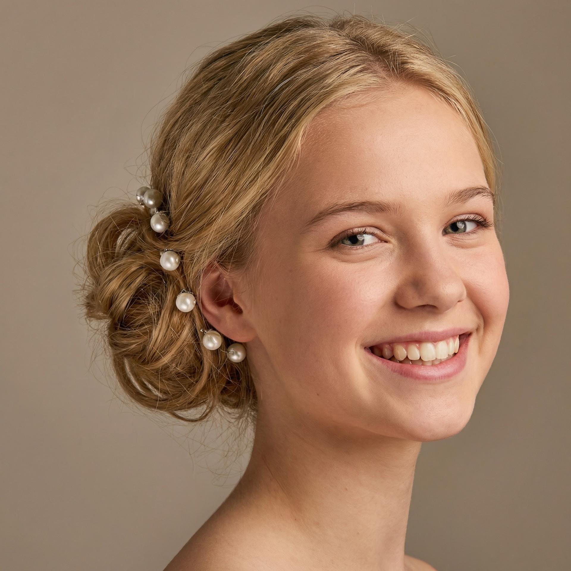 Ob Blowout Waves, Half-up Waves oder ein eleganter Dutt – mit dem richtigen Haarschmuck wird deine Frisur erst richtig festlich. Perlen und zarte Details passen perfekt zur Konfirmation und sorgen für einen edlen, femininen Stil.