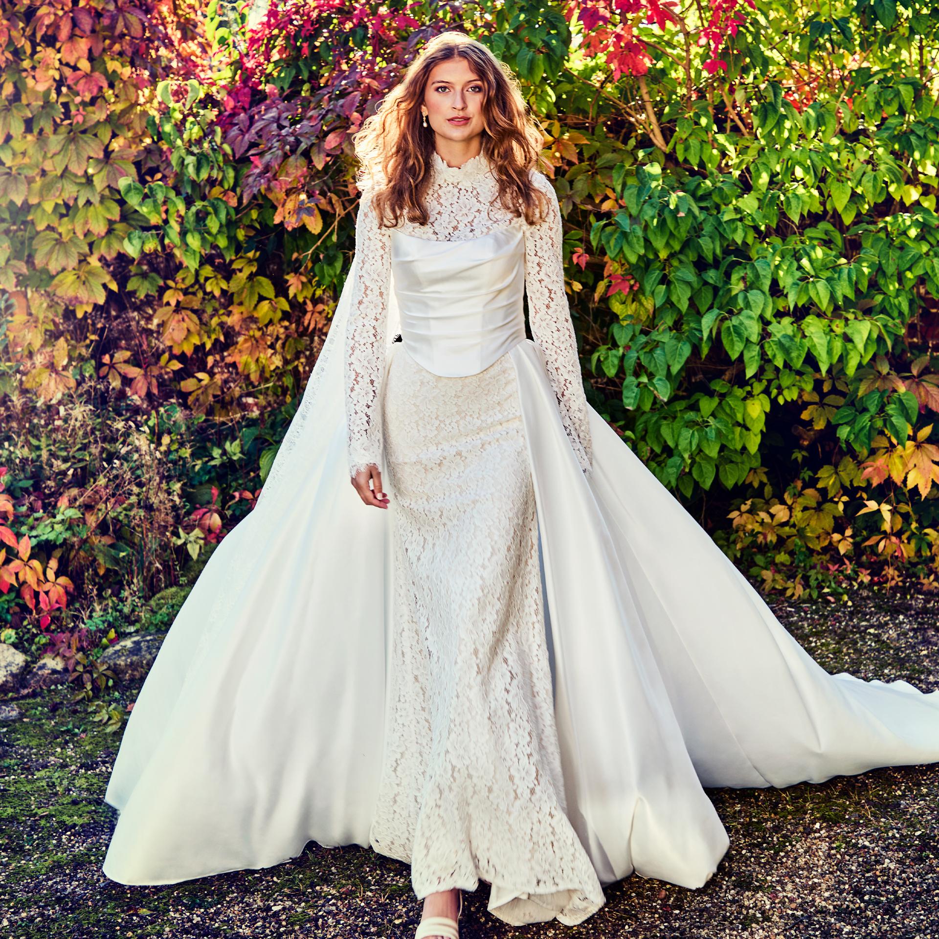 - Detachable elements such as skirts, sleeves and capes — offering versatility and unique bridal expression